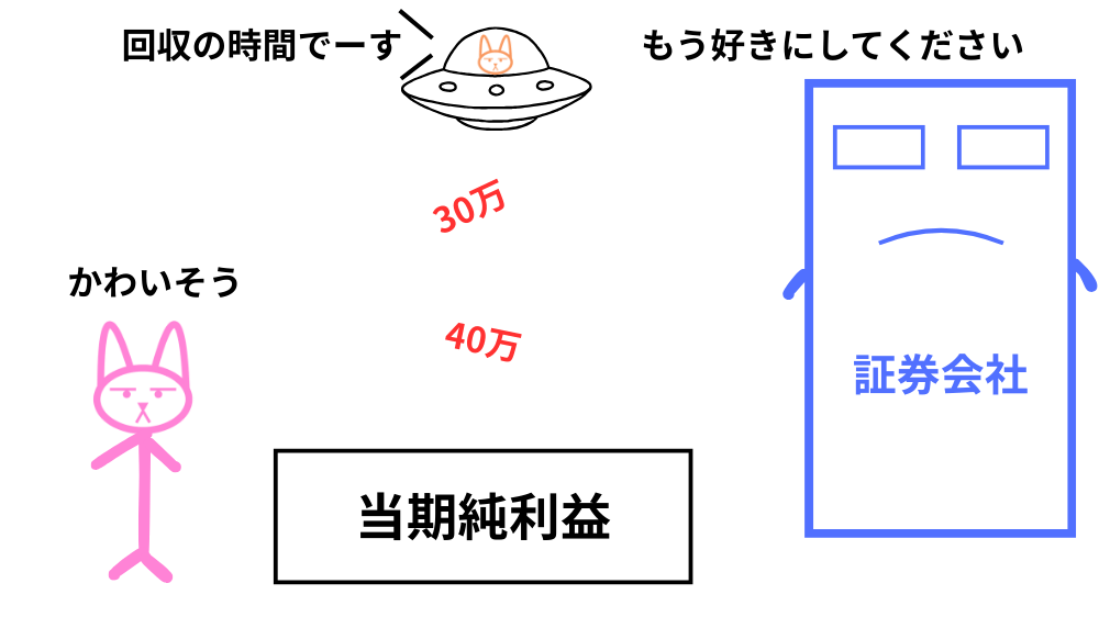 特別利益はありませんでしたが、災害発生時に機材の一部が壊れてしまったので、その損失として30万(特別損失)と、法人税が40万ありました。