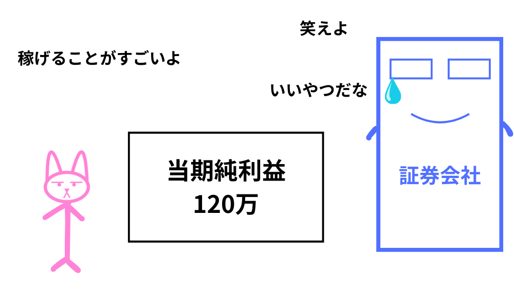 上記の例でいうとA社の最終的な利益(当期純利益)は120万になります。
