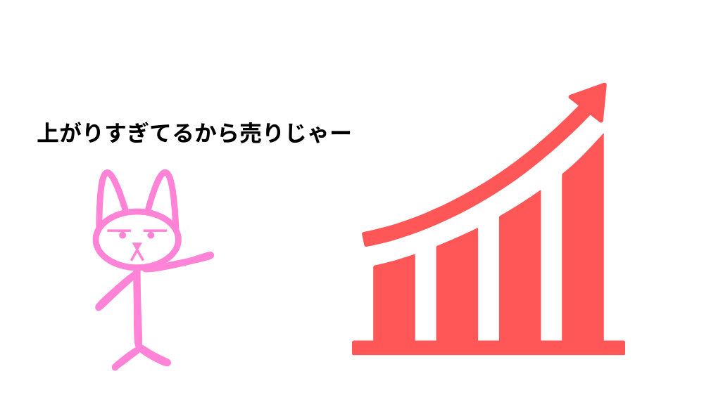 その企業の株価が過大評価されて買われすぎている状態になると、利益確定のために売りに出されて、株価は下がり始めます。