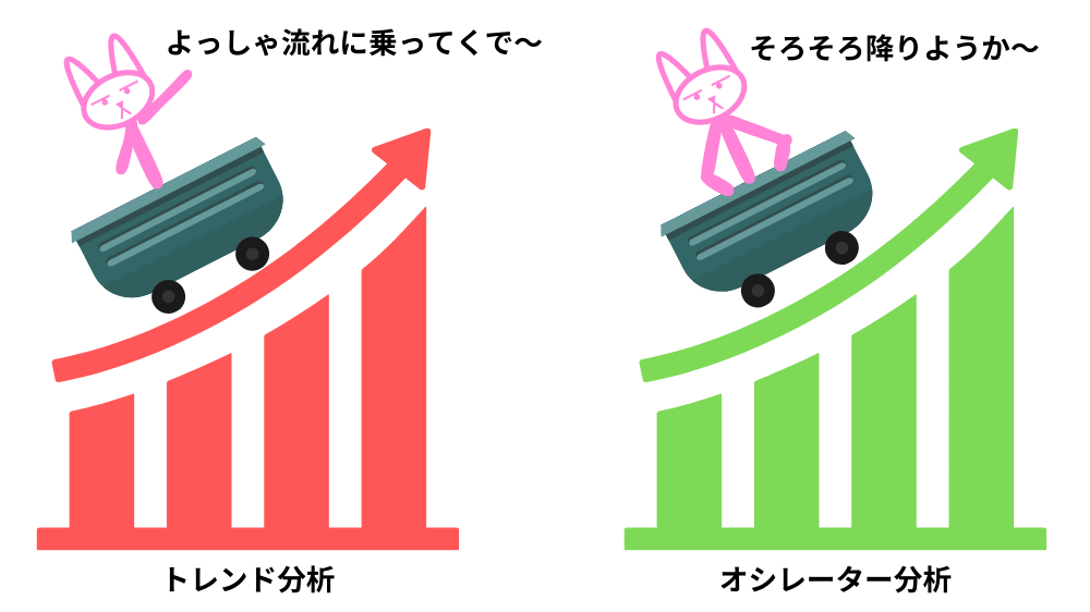 一方、オシレーター分析は、株価の反転を狙って売買することが多いため、売買のタイミングがトレンド分析とは異なる場合があります。