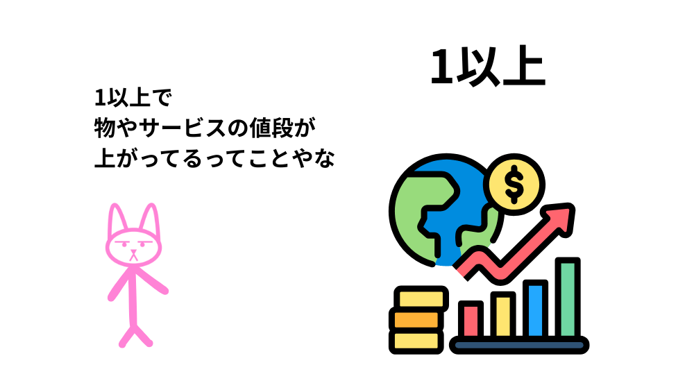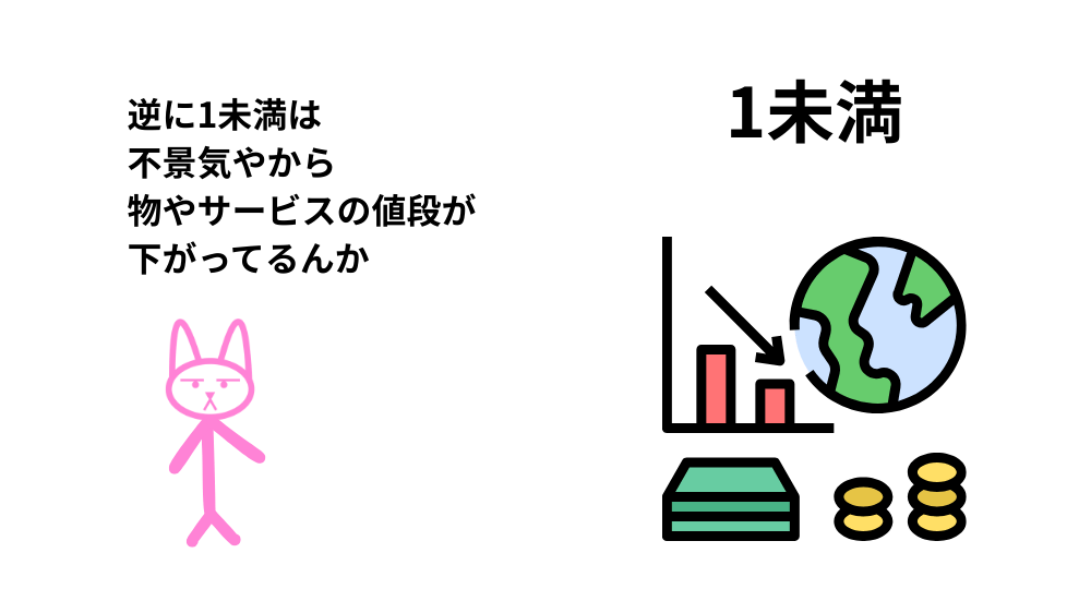 一方、1未満の場合は、物価が下落 している(デフレ) ことを意味します。