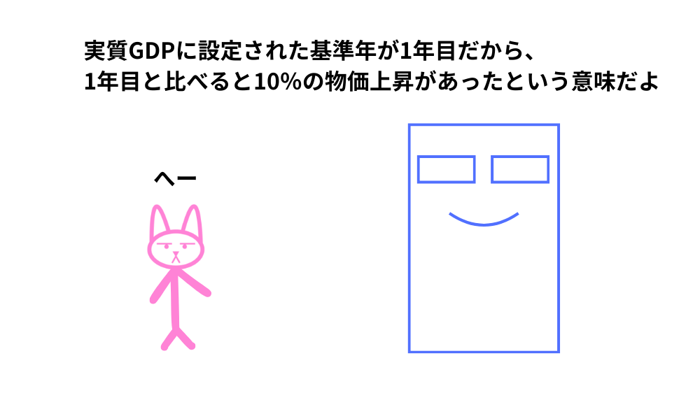 この場合、2年目のGDPデフレーターは次のようになります。