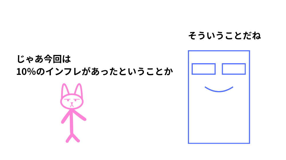 たとえば、ニュースなどで「日本のGDPデフレーターは前年比+2.0%」と報じられた場合、それは国全体の物価が平均して2%上昇したという意味になる。