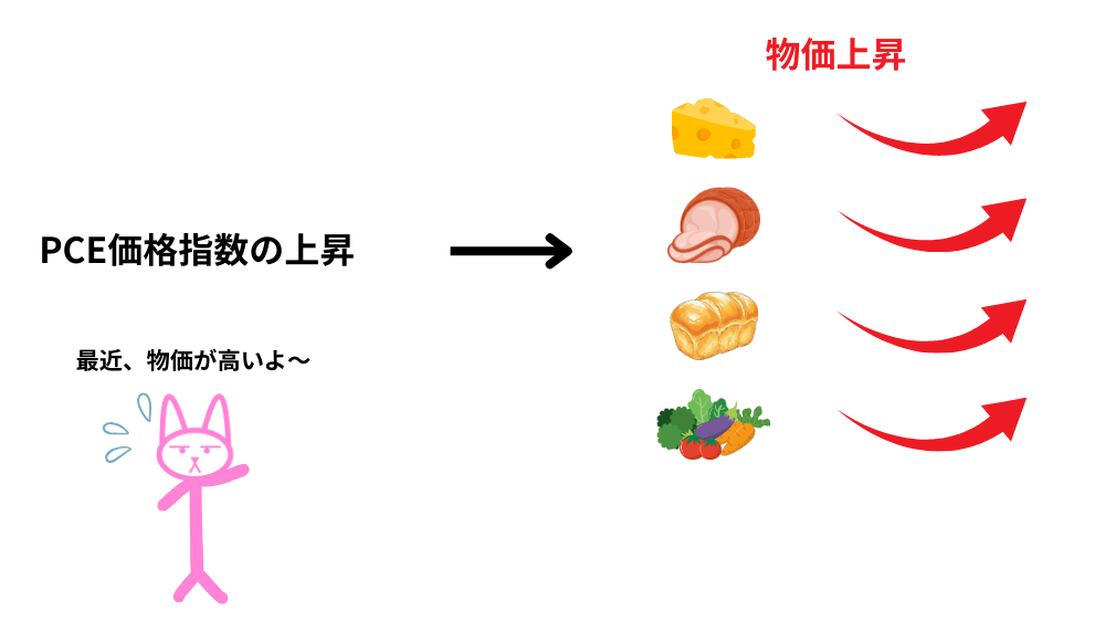 PCE価格指数が上昇している場合は、消費者が感じる物価が上がっている(インフレが進んでいる)ことを意味します。