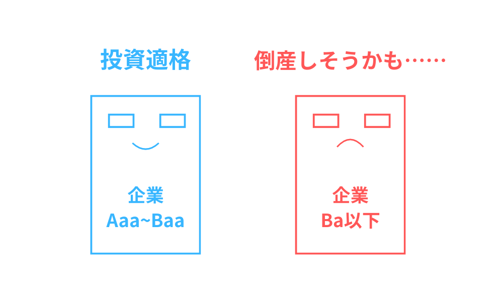 Aaa〜Baaは 投資適格、Ba以下は 倒産などのリスクが大きい債権 とされます。