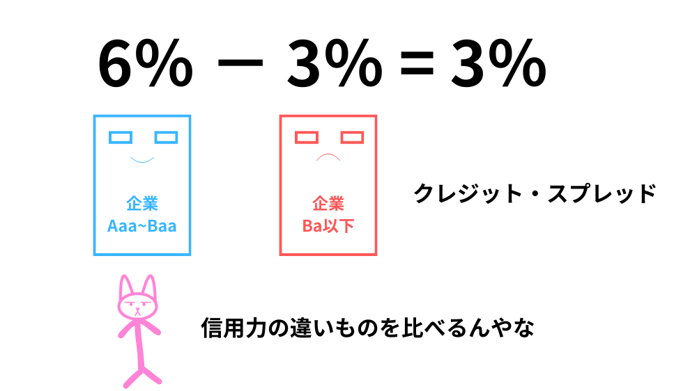 たとえば、下記のような場合のクレジット・スプレッドは3%です。