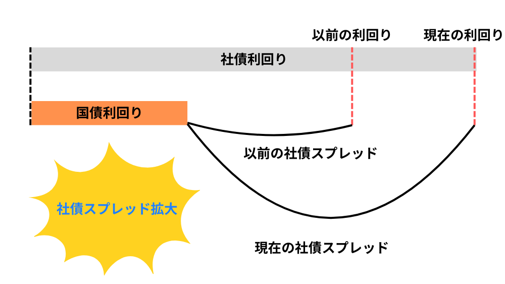 景気後退局面では、企業の倒産リスクも考慮されて社債の利回りが上昇し、社債スプレッドが拡大します。