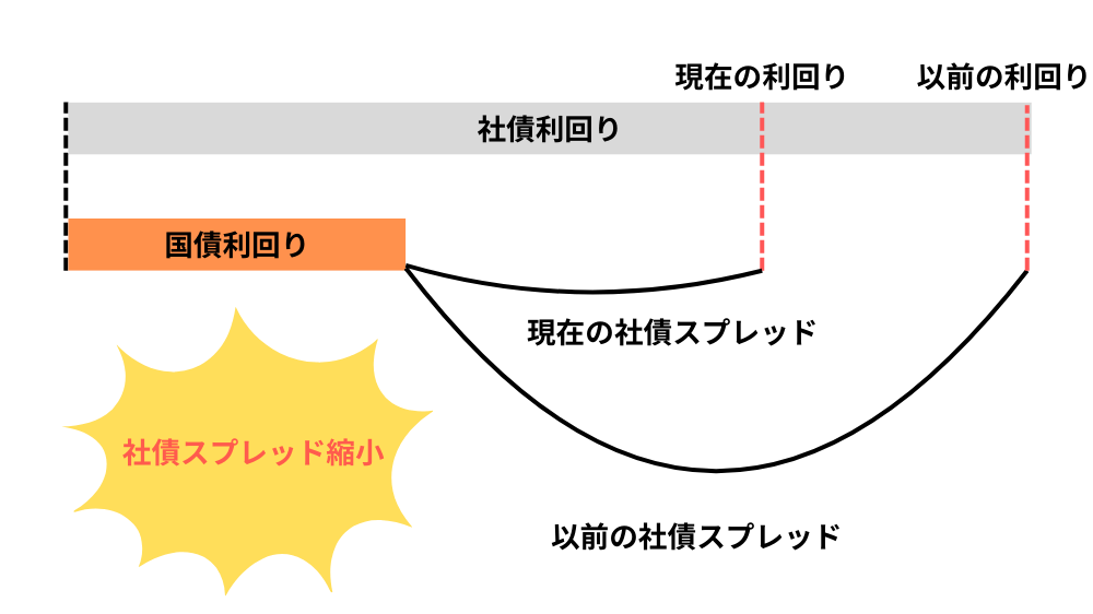 逆に景気拡大局面では、企業の信頼性が改善することで社債の利回りが低下し、社債スプレッドが縮小します。