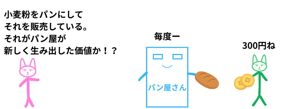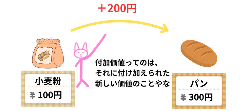 300円(パンの売値) − 100円(小麦粉の価値)= 200円(付加価値)