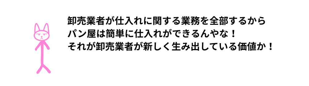 さらに、小麦粉を製造している会社とパン屋さんの間に、卸売業者がいるケースも考えてみましょう。