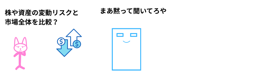 ベータ値(β)とは、株や資産の価格変動の大きさ(リスク)を、市場全体の動きと比べた指標です。