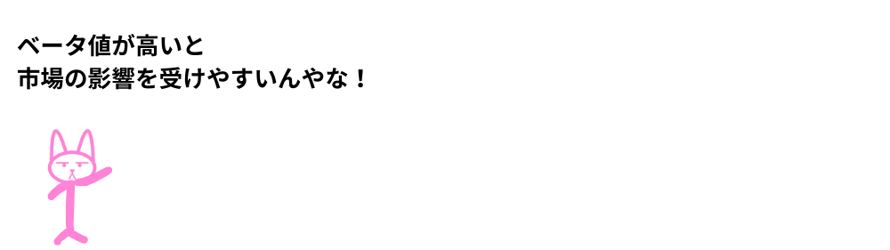 逆に、1より小さい資産のことをベータ値が低いと言い、値動きが穏やかな資産であると言えます。
