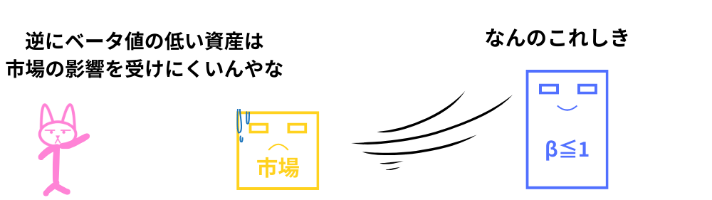 市場が下落局面 ➡︎ ベータ値の低い資産も下落しやすい