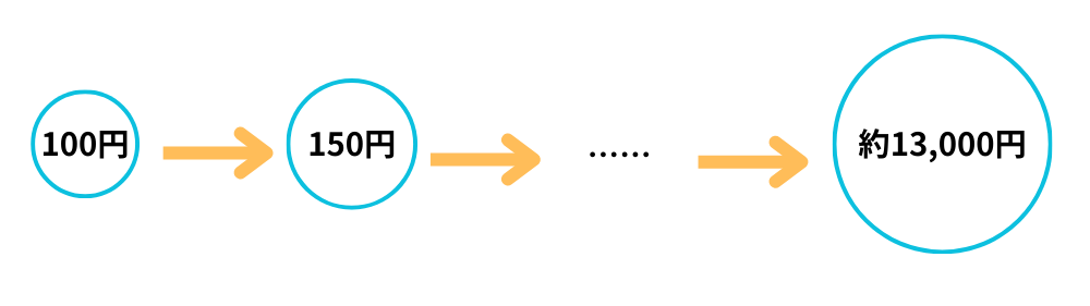 1ヶ月後 ➡︎ 100円 × 1.5 = 150円