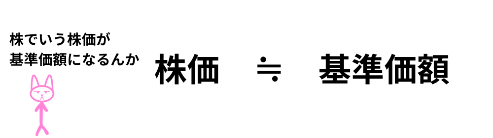 基準価額とは、投資信託1口(または1万口)あたりの価格のことなんだなって覚えておいてね。