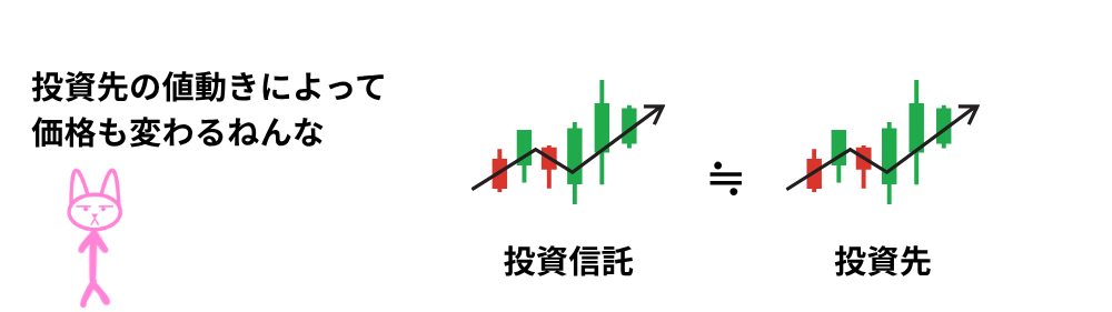 そのため、投資している資産の価値が変わると、投資信託の価値も変わります。
