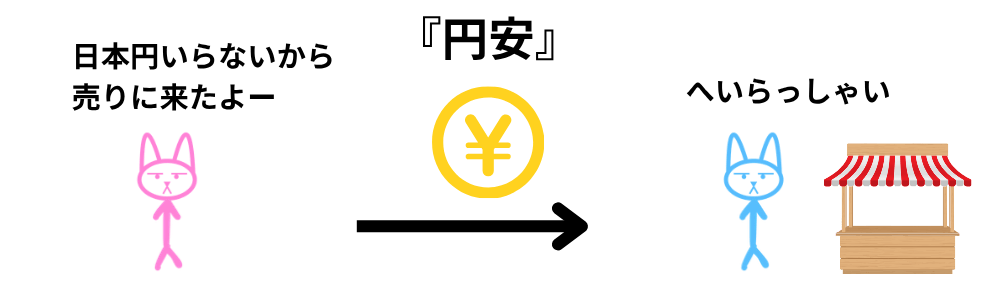 円を売る人が多い → 円安