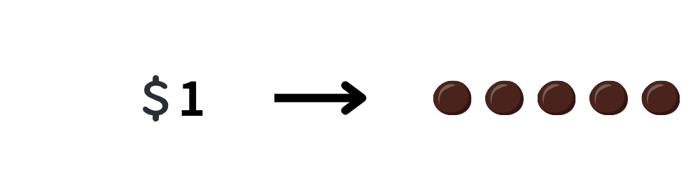 たとえば、1ドルでチョコボール5個を買うことができるとします。