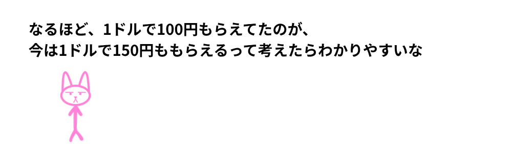 1ドル = 100円 → 1ドル = 150円