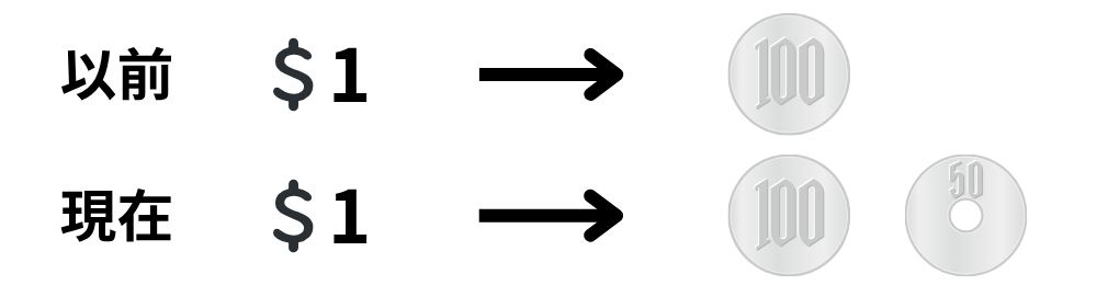 1ドル = 150円 → 1ドル = 100円