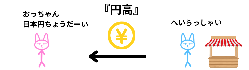 円安 / 円高とは、円安は円の価値が下がること、円高は円の価値が上がることを表す言葉なんだなって覚えておいてね。