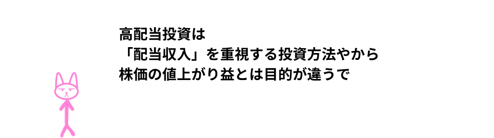 高配当投資とは、配当金(企業からもらえるお金)を多く受け取ることを目的とした投資方法なんだなって覚えておいてね。