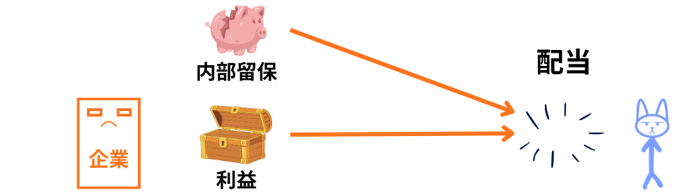 このような場合、一時的に内部留保(これまでの利益の蓄積)を取り崩して配当しているケースもあります。